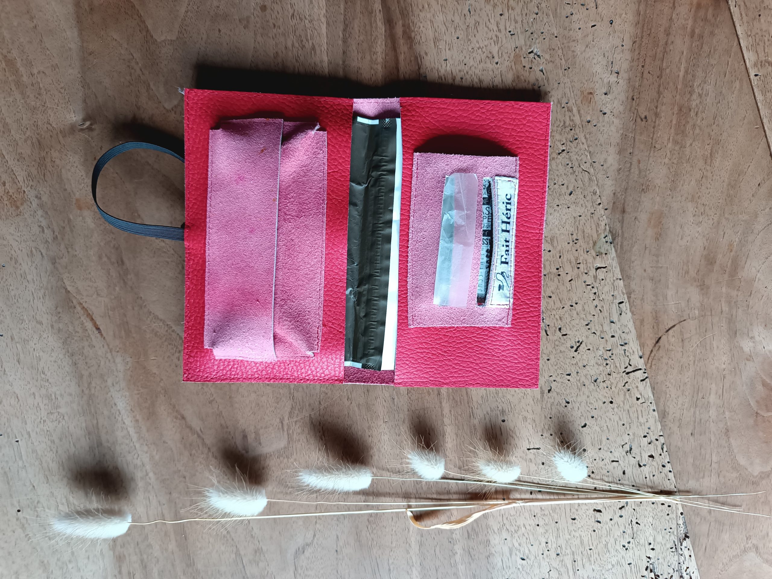 Transportez votre tabac avec élégance grâce à cette blague à tabac upcyclée fabriquée dans l’ouest de la France à partir (d’un cuir) revalorisés. Ce cuir de très bonne qualité provient d’un canapé de couleur rouge, j’ai aussi confectionné différents modèles de sacs, portes monnaies, portefeuilles, …, tous en pièce unique.