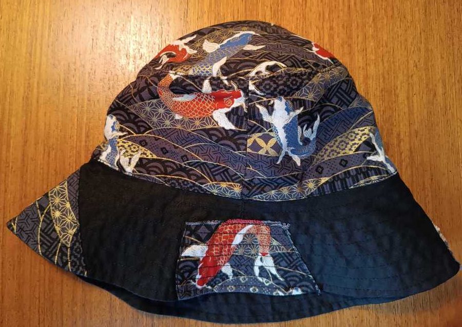 Ce bob upcyclé en tissu 100% coton au motif carpes koï est une pièce unique, indispensable en période d’été mais aussi en mi-saison. Vous pouvez le porter côté uni ou côté motif car ce modèle est réversible.