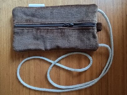 Cette pochette téléphone est une pièce unique! Elle comporte une poche fermée par une pate pour ranger votre téléphone ou lunette et une poche zipper au dos qui peut facilement contenir vos papier et porte monnaies. La sangle est un lien que l’on noue pour régler la hauteur.