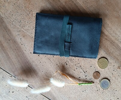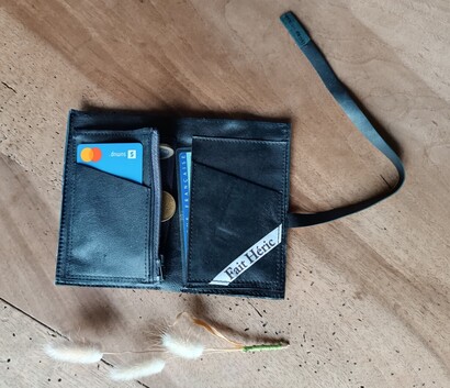 Portefeuille cuir noir upcyclé