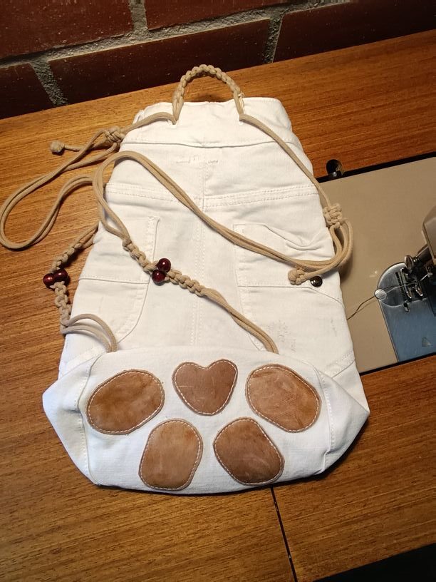Ce sac seau artisanal est né avec une touche bien personnel car je lui ai cousu une marque de patte en cuir sur son fond. Pratique avec ses poches extérieurs et ses 2 poches intérieures pour y glisser ses clés et plein d’autres choses à garder sous la main. Il se referme grâce à ses bretelles en macramé ornés de perles en bois. Il peut se porter comme un sac à dos ou sur l’épaule.