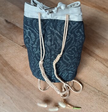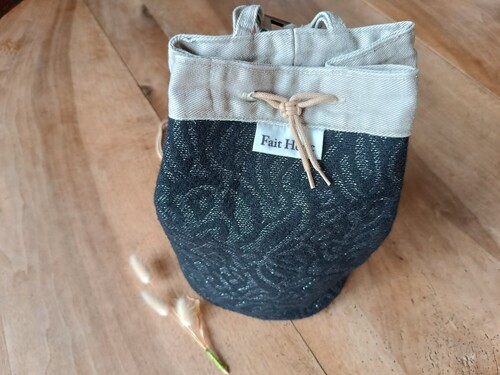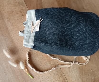 Ce sac seau lainage noir fil argenté est né à partir d’une chute de coupon. Pratique avec ses deux poches zippées et deux poches plaquées à l’intérieur pour y glisser ses clés et plein d’autres choses à garder sous la main. Il se referme grâce à ses bretelles en macramé ornés de perles en bois. Il peut se porter comme un sac à dos ou sur l’épaule.